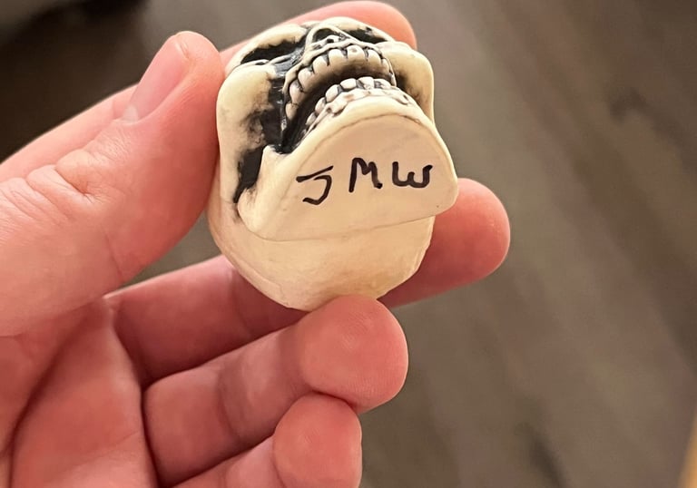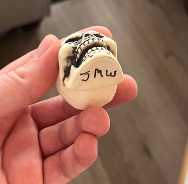 After building level 10 characters, we went through a randomly generated dungeon created by Jim drawing slips of paper every time we left a room, with each slip containing a short description of the area we explored. He was a bit disappointed we didn’t run into his “kung fu fighters,” a notorious section of dungeons he ran where the players fought against superhuman martial artists who could punch through plate mail armor (this was imparted to me by another friend of his, but luckily, we didn’t run into them!). I died at least once during his game, but he did hand out little skulls with his initials on them to those who didn’t make it.